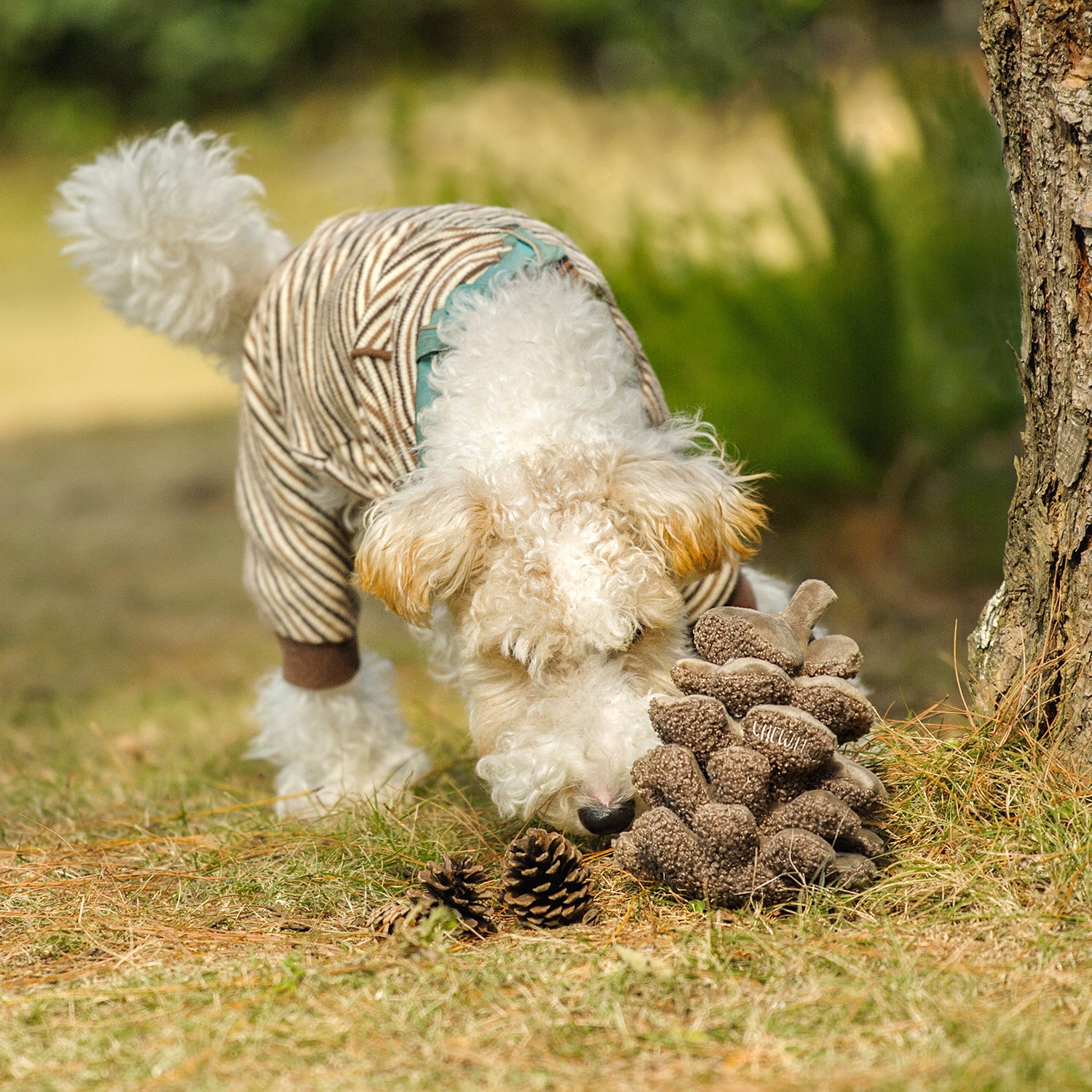 Our interactive dog toy is designed to combat boredom with its unique pinecone-inspired shape, offering both natural appeal and engaging play.