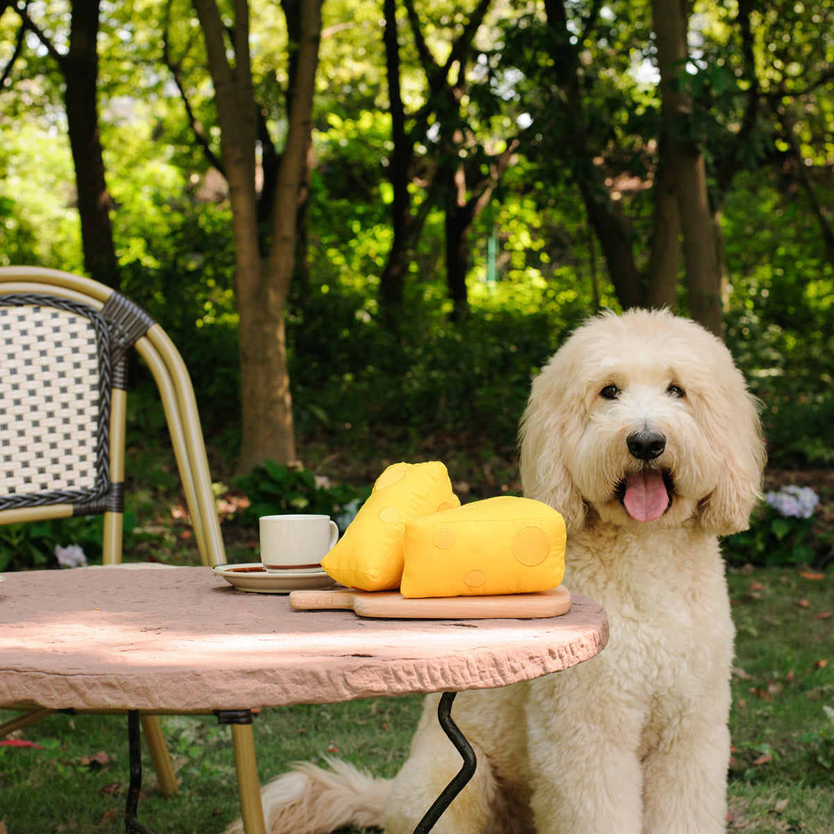 Unleash joyful moments of playtime with our irresistibly cheesy canvas dog squeaky toy!