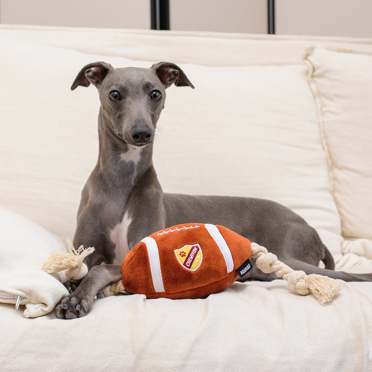 It's a new twist on the classic football ! Durable, super-strong cotton ropes makes it easy for the dog to hold in his mouth and also not easy to be damaged.