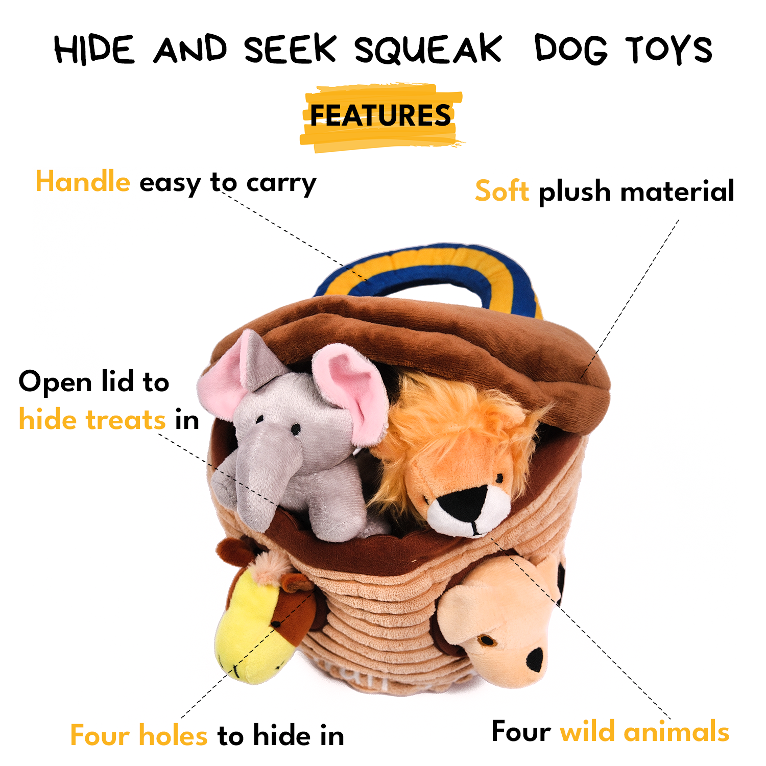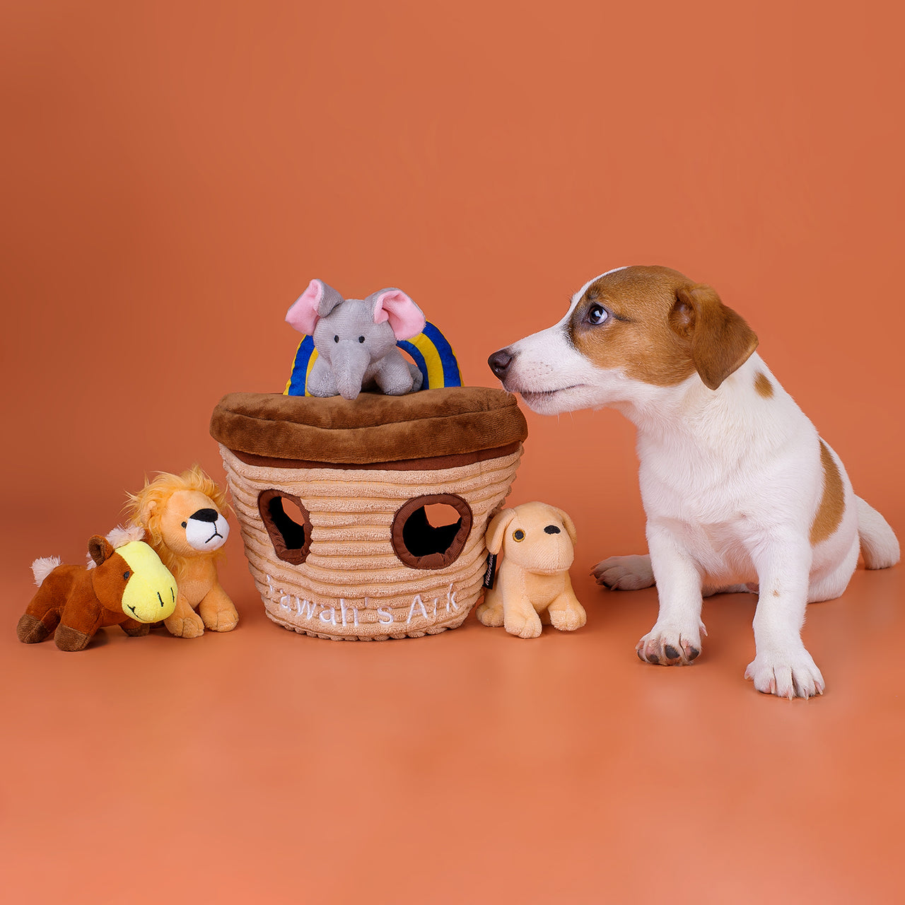 Embark on a wild and playful journey with our Hide & Seek Ark, where your furry explorer will join four captivating wild animals on a thrilling quest!