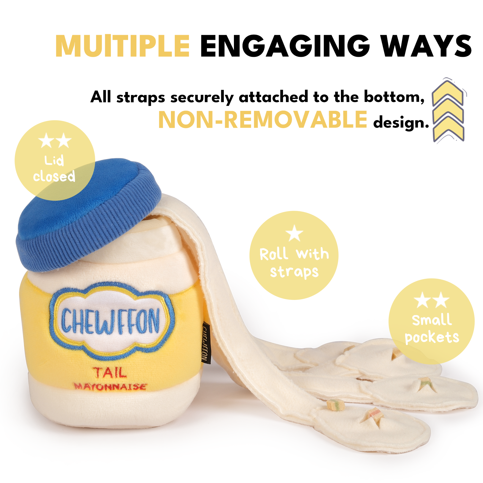 Meet the Mayo Jar-inspired Snuffle Toy – the ultimate sniff-and-find puzzle for your dog. Designed to resemble a mayonnaise jar, this creative dog toy features multiple hidden treat compartments. Hide your dog's favorite snacks inside and let the scent-driven scavenger hunt begin!