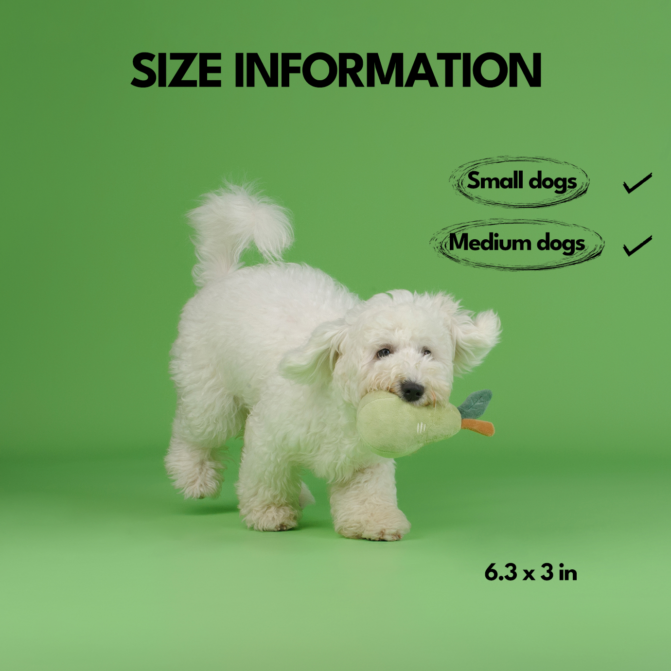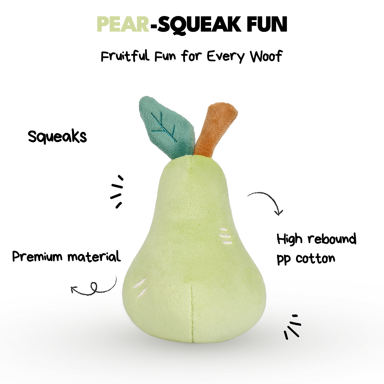 Meticulously crafted to resemble a luscious pear, this charming plush toy will delight your dog with its inviting appeal. Surprise your furry friend with the perfect fruit-shaped squeaky toy that promises hours of joy and excitement.