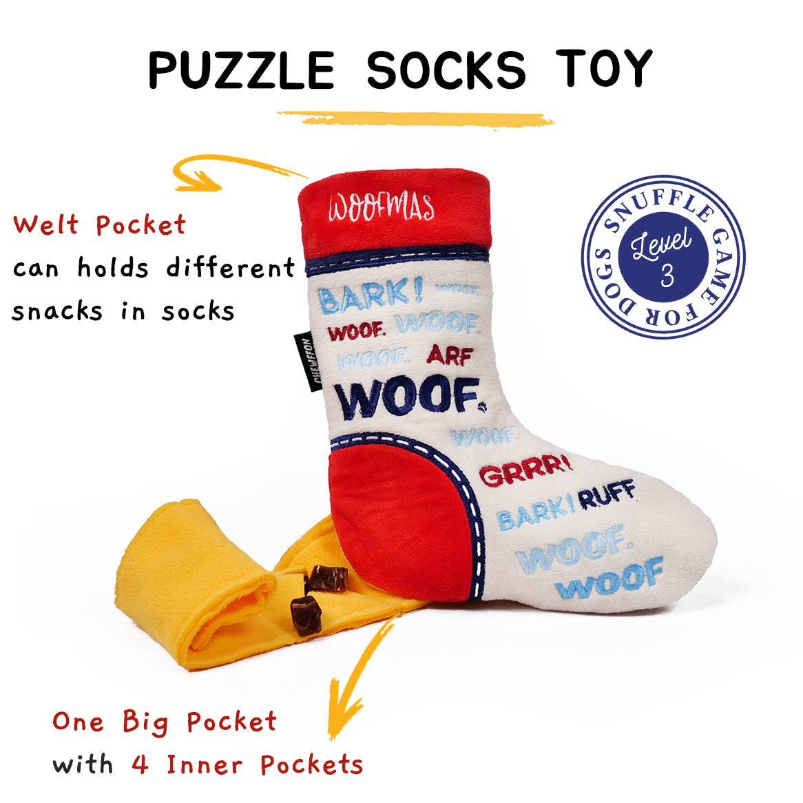 Hide the treat in the small pockets of the interactive dog toys and let your dogs to find it out to satisfies dogs natural curiosity, enhance its superior sense of smell and drain its energy. It's a great Birthday and Christmas Gift for Furry Friends .This socks toy with a hanging loop for easy display, it would be a great gift for your puppy and your friends’ puppies.