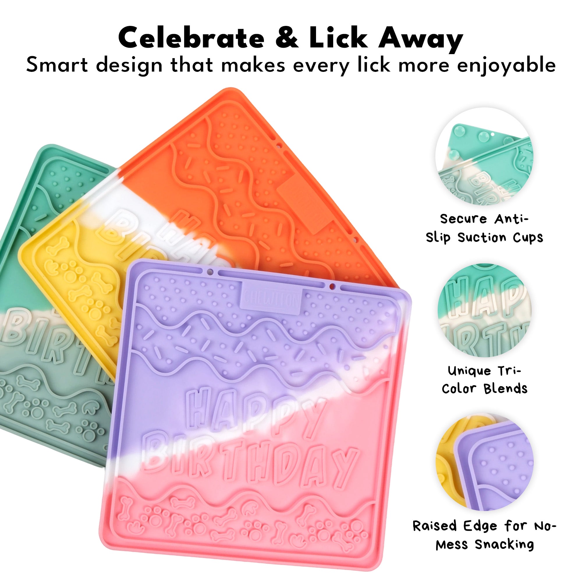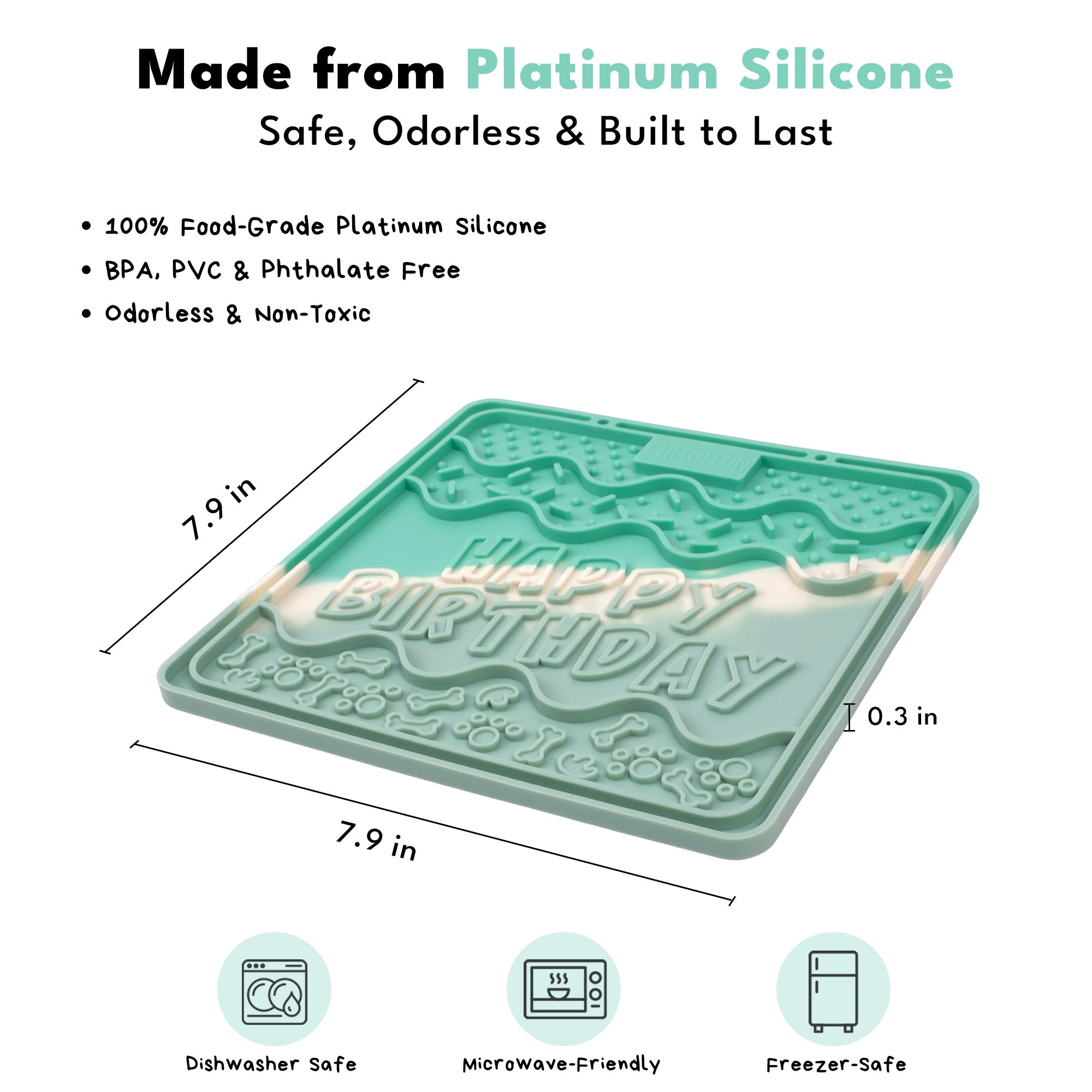 Made from premium, food-grade silicone, this lick mat is BPA-free, soft, and durable for everyday use. The back features 36 strong suction cups that keep it securely in place on smooth surfaces, making it perfect for bath time, grooming, or feeding. Suitable for pets of all sizes, it’s not only a fun birthday accessory but also a practical tool that helps reduce anxiety and promote calm, soothing behavior.