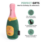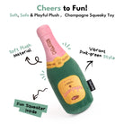 Pop the fun with this adorable champagne bottle dog toy!