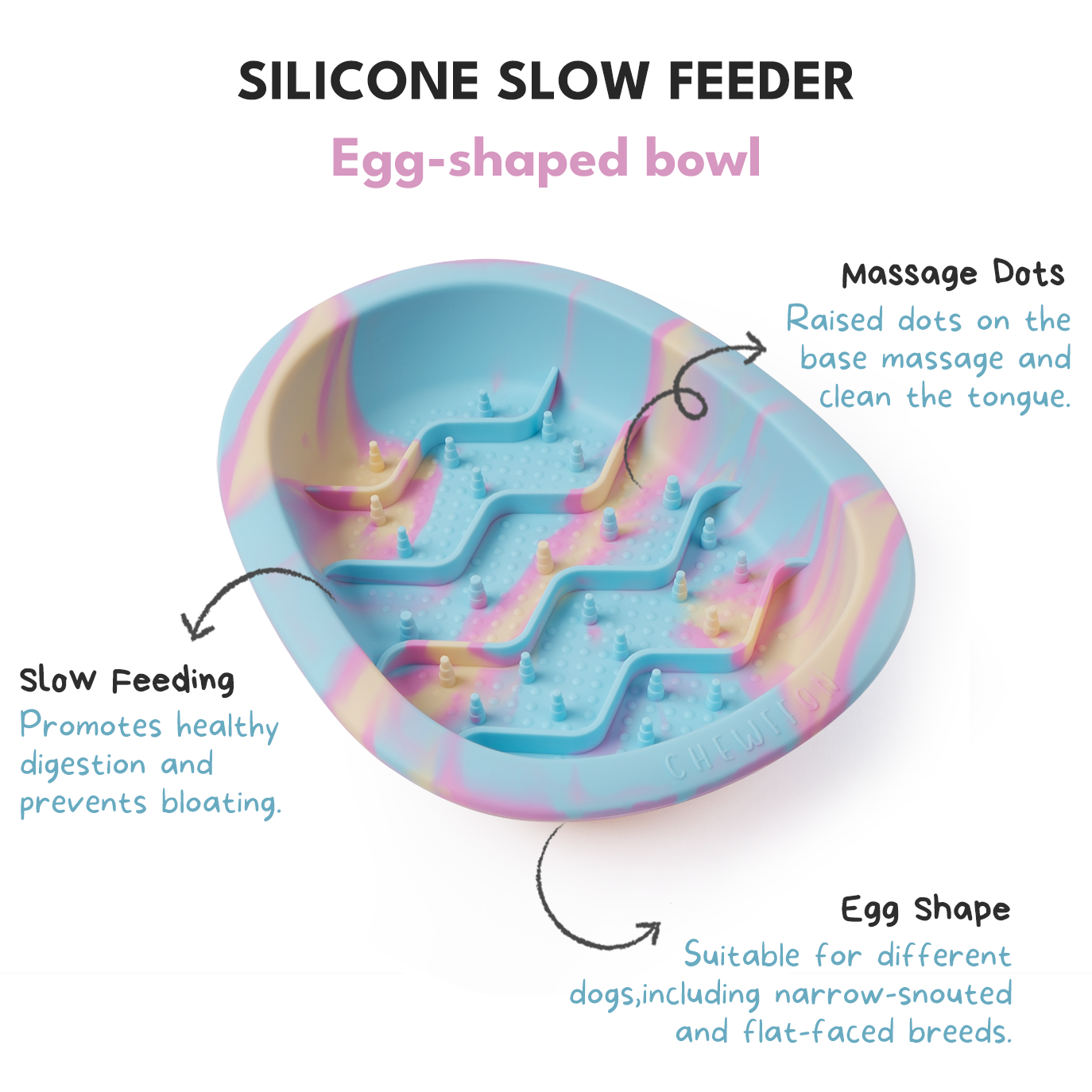 Designed with your pet's health and happiness in mind, this slow feeder is made of 100% food-grade silicone. It's safe, non-toxic, durable, and can withstand chewing, plus it's microwave and refrigerator safe! The unique design features two patterns that separate food, extending mealtime and promoting healthier digestion by preventing gulping and potential choking.