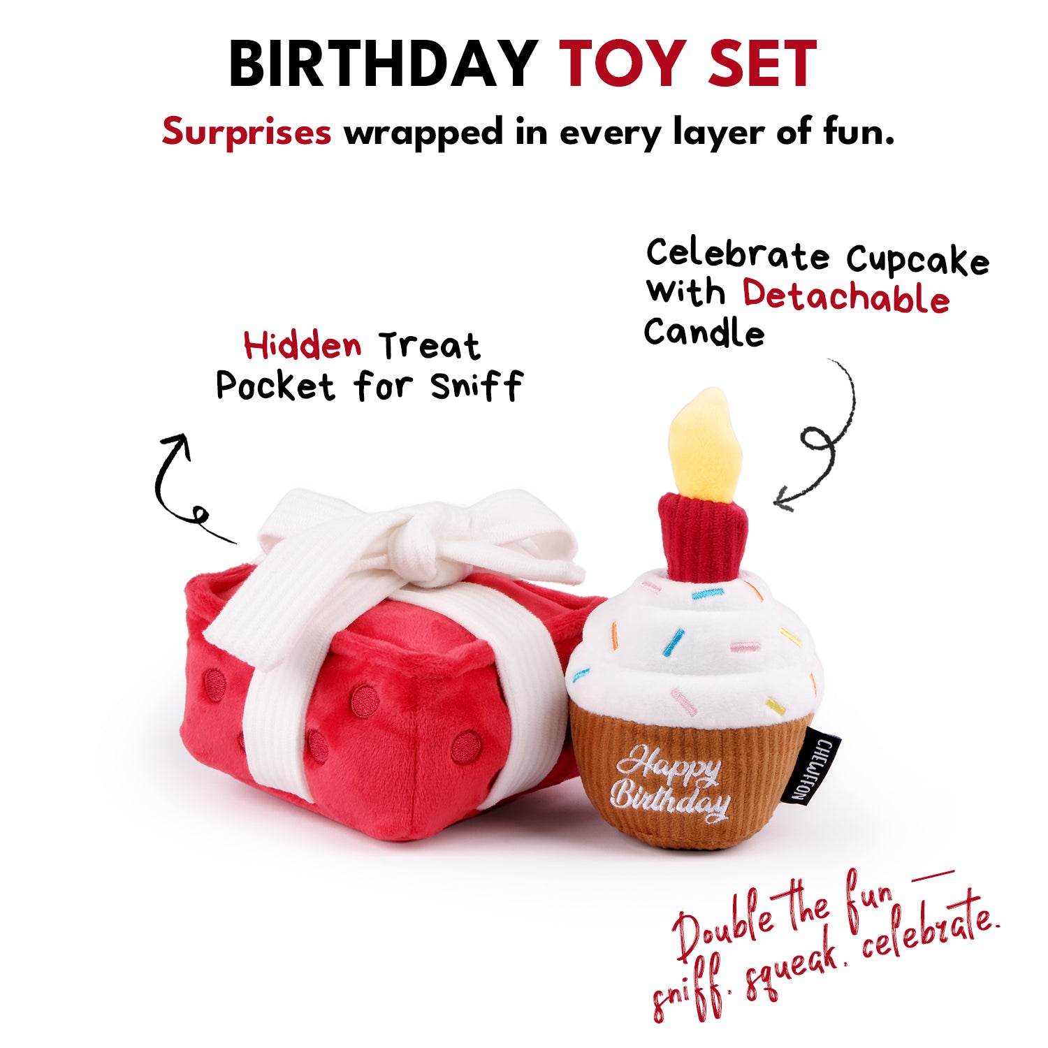 Built-in crinkle paper and squeaker mimic the joy of unwrapping, keeping your dog curious and entertained.Untie the ribbons to find the treat hole—stimulates natural foraging and makes playtime rewarding.Made from soft, high-quality, non-toxic materials—safe, durable, and comfortable for your pup.