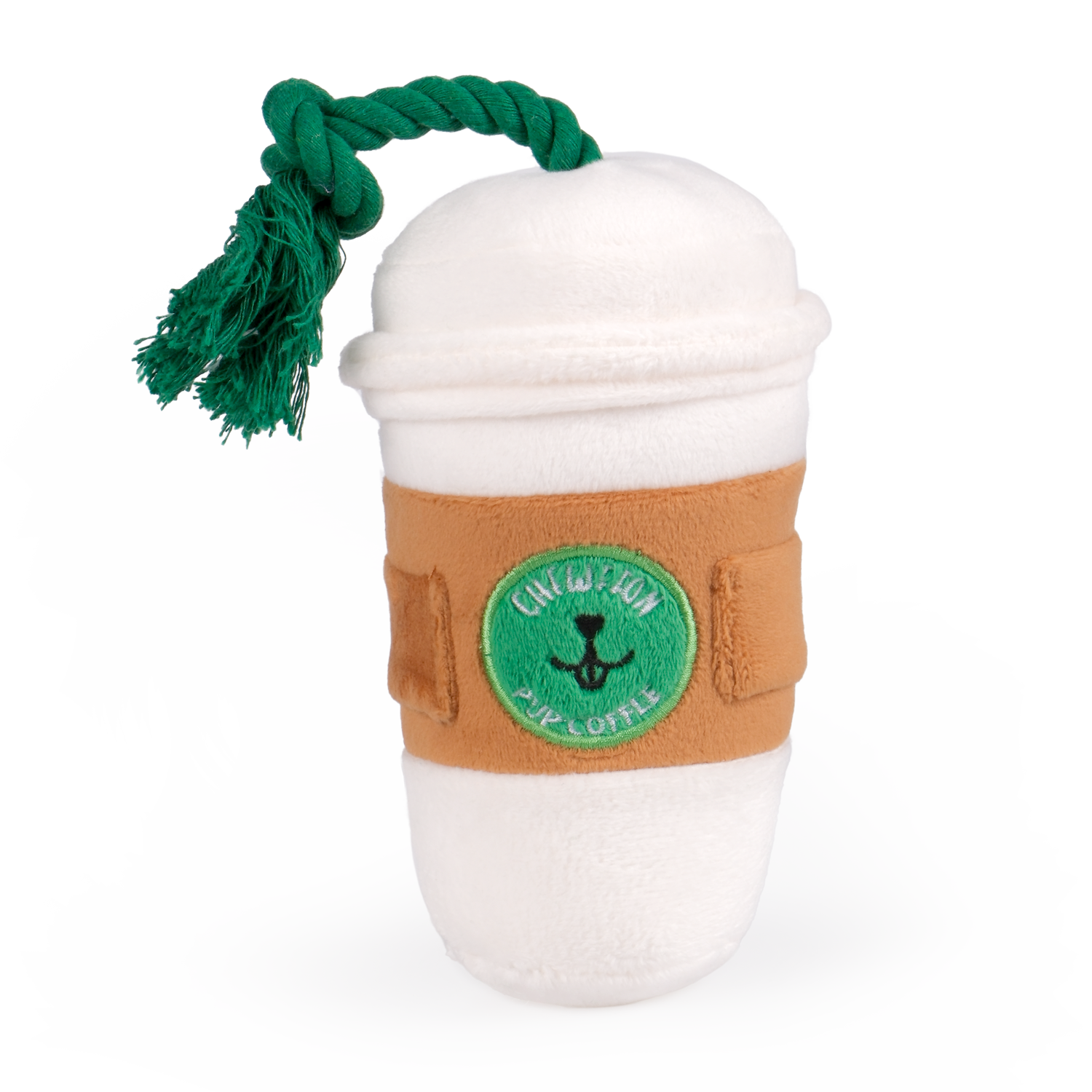 Bring café vibes to playtime! This plush coffee cup toy comes with a knotted rope handle, hidden treat pockets, squeakers, and crinkle sounds for endless fun. Designed for interactive sniffing, tugging, and problem-solving, it helps relieve boredom while keeping pups active and happy.